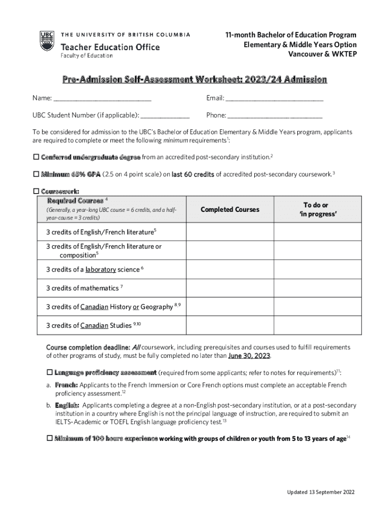 Vancouver & WKTEPPreAdmission Reassessment Worksheet: 2023/24 Admission