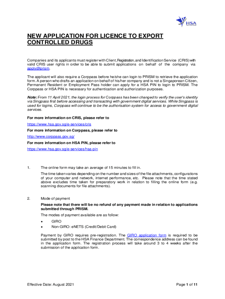 NEW APPLICATION FOR License TO EXPORT CONTROLLED DRUGS Companies and its applicants must register with Client, Registration, and Identification Service (CHRIS) with valid CHRIS user rights in order