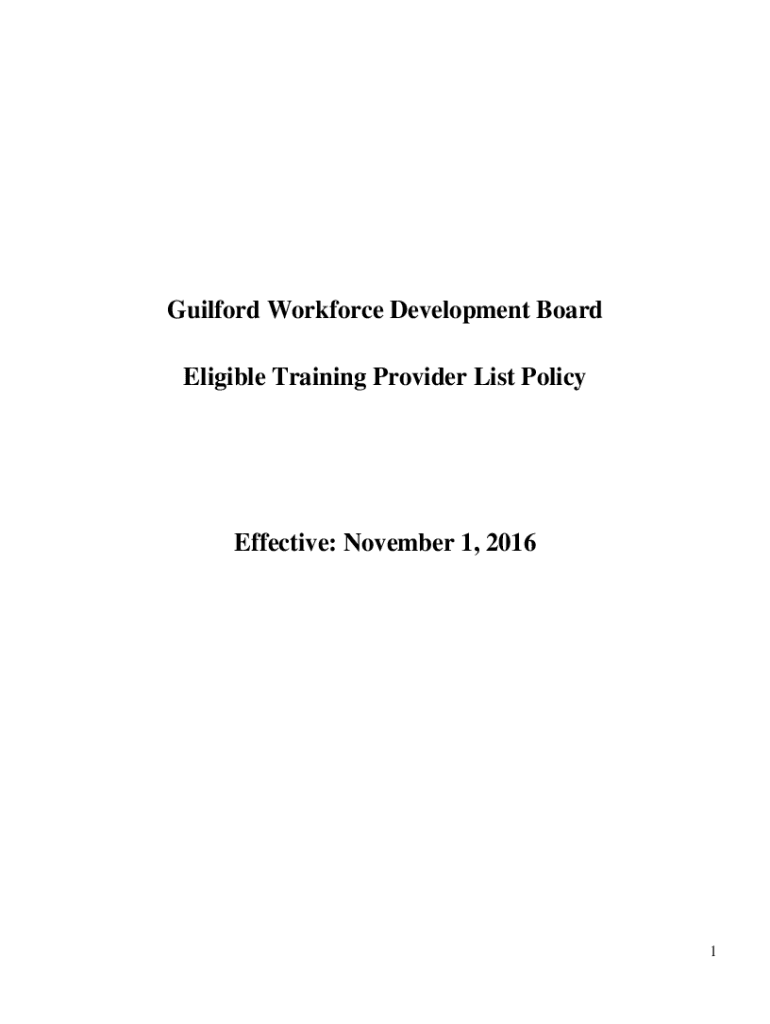 Eligible Training Provider List PolicyEffective: November 1, 20161GENERAL INFORMATION