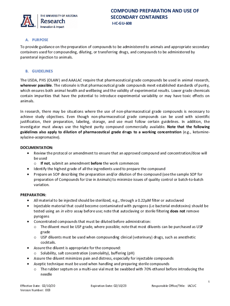 Toprovideguidanceonthepreparationofcompoundstobeadministeredtoanimalsandappropriatesecondary