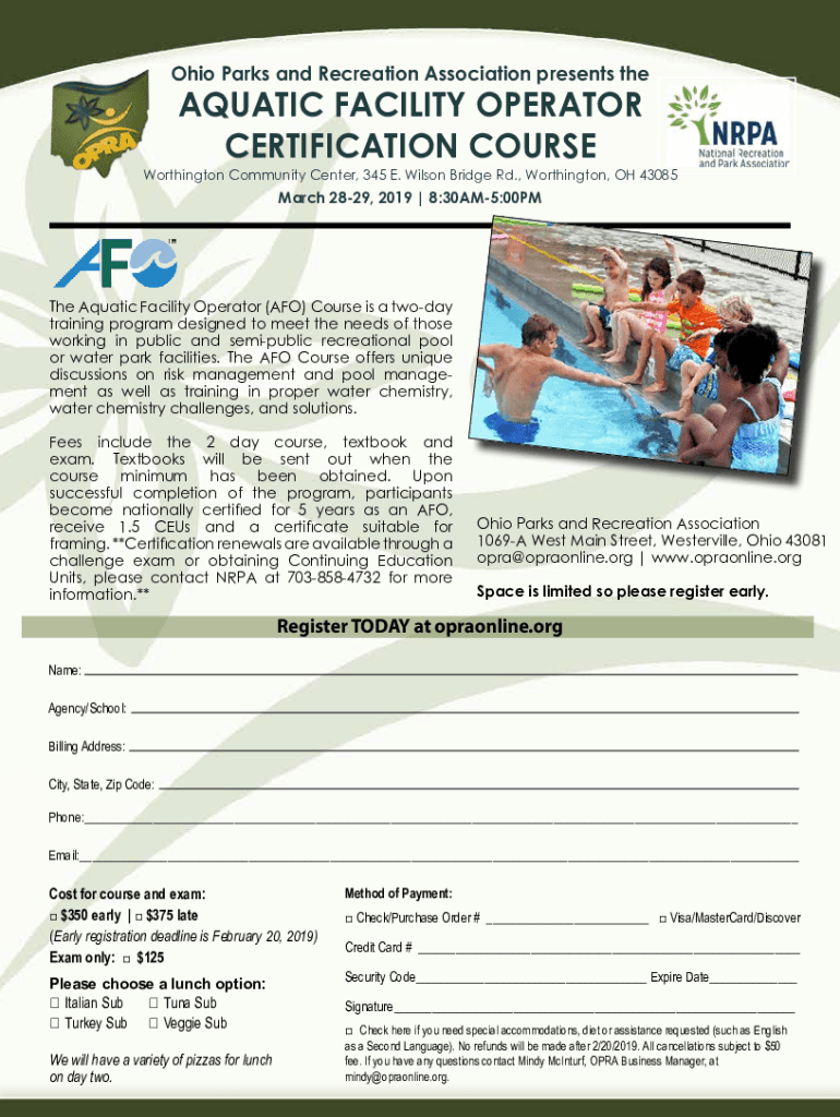 Ohio Parks and Recreation Association presents aquatic FACILITY OPERATOR