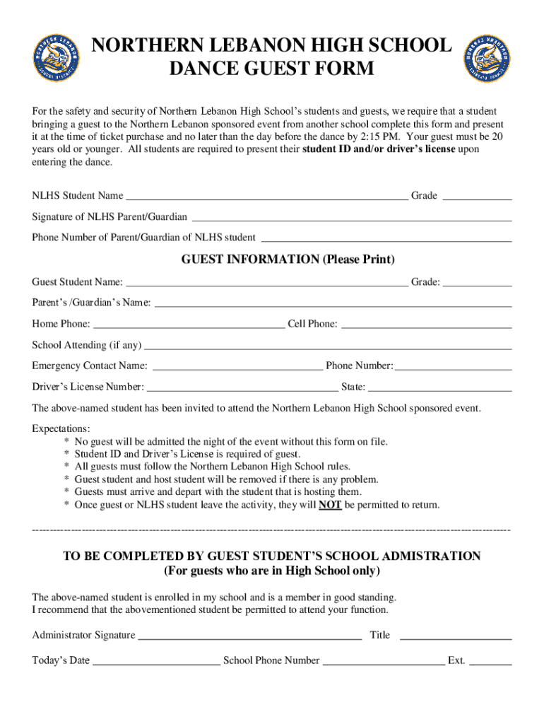 NORTHERN LEBANON HIGH SCHOOL DANCE GUEST FORM For the safety and security of Northern Lebanon High Schools students and guests, we require that a student bringing a guest to the Northern Lebanon sponsored