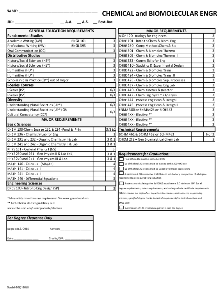 NAME: ___ UID: _____ A.A.__ A.S.CHEMICAL and BIOMOLECULAR ENG__ PostBacGENERAL EDUCATION REQUIREMENTS Fundamental Studies Academic Writing (AW) Professional Writing (PW) Oral Communication (OC)EGL