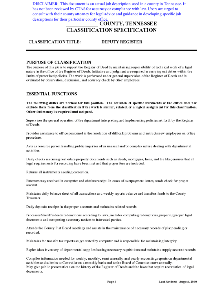 DISCLAIMER: This document is an actual job description used in a county in Tennessee. It