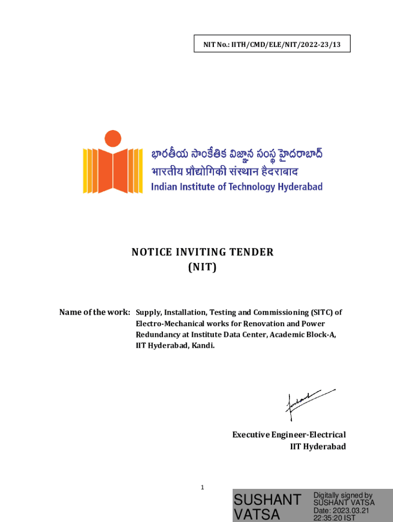 Get the free Name of the work: Supply, Installation, Testing and Commissioning (SITC) of - iith ac