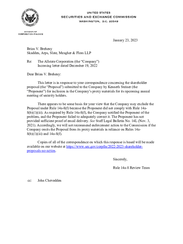 Incoming letter dated December 19, 2022Dear Brian V. Brewery: