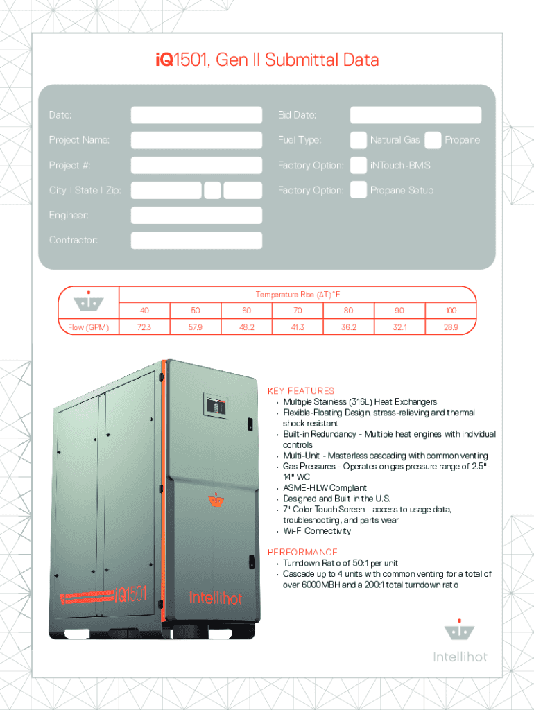 IQ1501, Gen II Submittal Data Date:Bid Date:Project Name:Fuel Type:Natural Project #:Factory Option:iNTouchBMSCity | State | Zip:Factory Option:Propane SetupPropaneEngineer: Contractor:Temperature