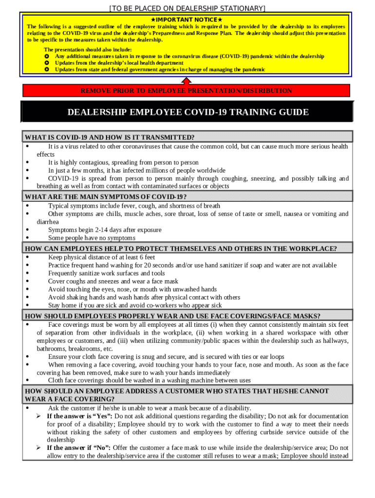 Template Dealership Employee Training Guide COVID-19 (Revised to include MADA changes/comments) AHC (00090083).DOCX instructions
