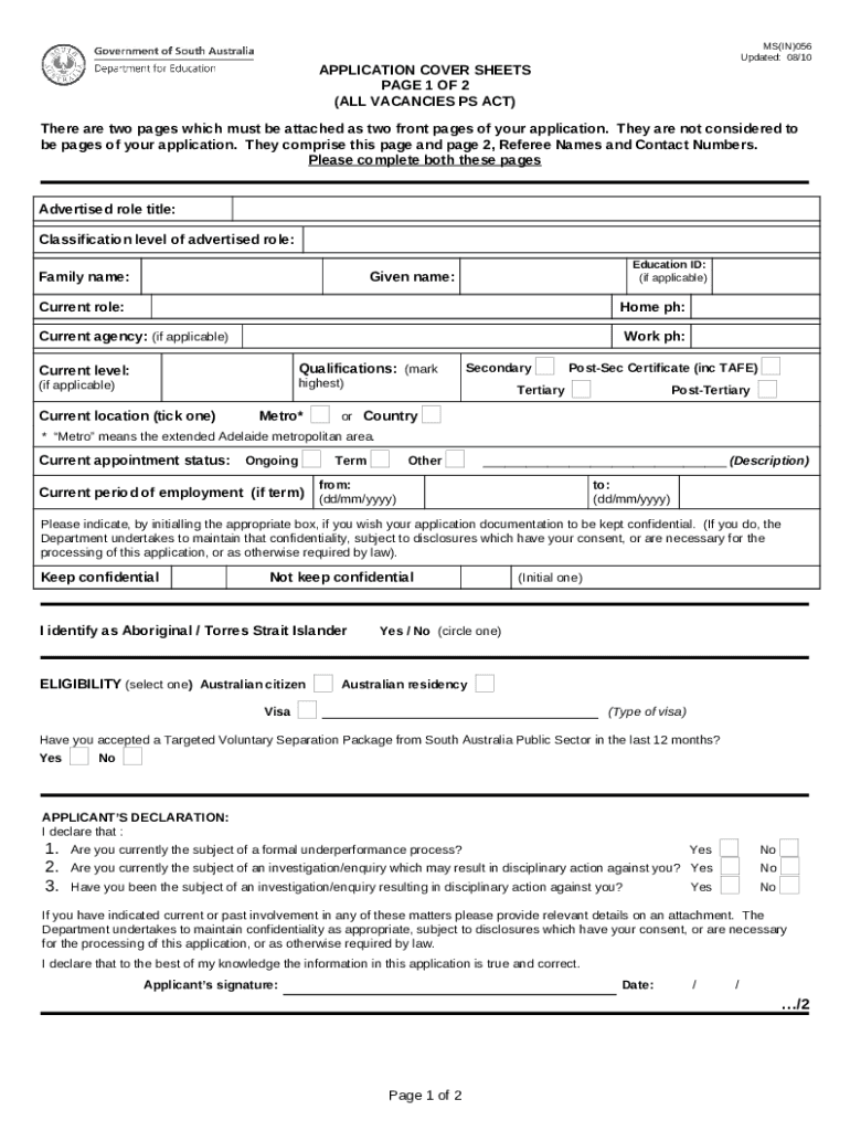 Template Application Cover Sheet PS Act. Cover Sheet instructions