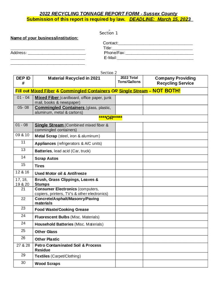 How to fill out Recycling Activity for Businesses - Tonnage Report ...