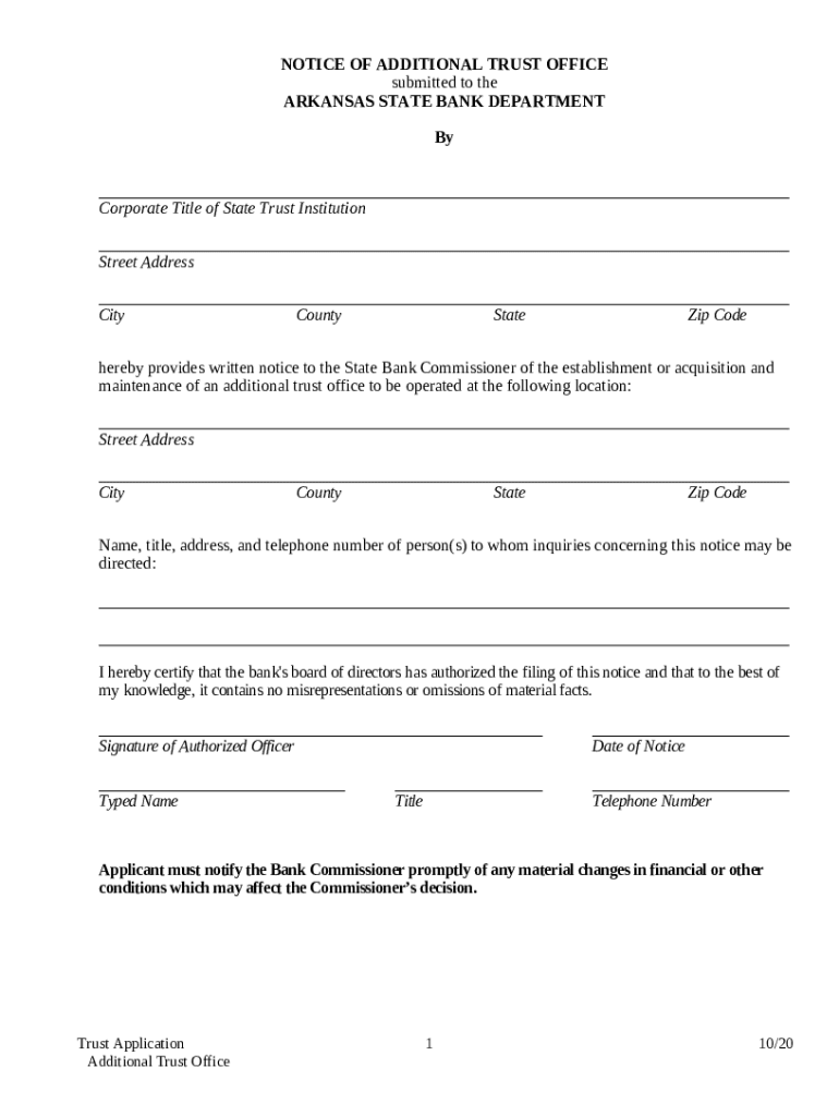 The notice of additional trust office is a fillable form in MS Word extension needed to be submitted to the required address to provide specific information. It needs to be filled-out and signed, which can be done manually, or with the help of a particular solution like PDFfiller. It lets you complete any PDF or Word document directly from your browser (no software requred), customize it according to your purposes and put a legally-binding e-signature. Once after completion, user can easily send the notice of additional trust office to the relevant recipient, or multiple individuals via email or fax. The editable template is printable as well because of PDFfiller feature and options presented for printing out adjustment. In both electronic and in hard copy, your form should have a clean and professional appearance. Also you can save it as the template for later, so you don't need to create a new blank form over and over. You need just to customize the ready document.