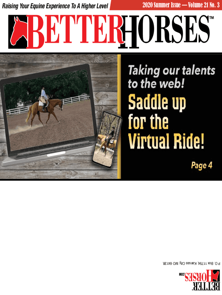 2020 Summer Issue Volume 21 No. 3P. O. Box 11794, Kansas City, MO 64138. Raising Your Equine Experience To A Higher LevelBETTER Horses e l e c n a C 0 2 0 2 r fo32020 Summer Issue Hi Friends, Hello