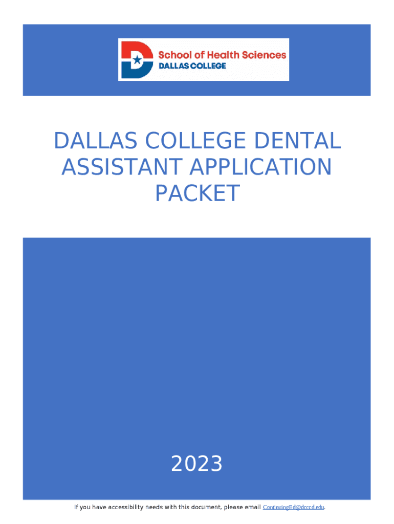 Instructions for the DALLAS COLLEGE DENTAL assistant APPLICATION PACKET form