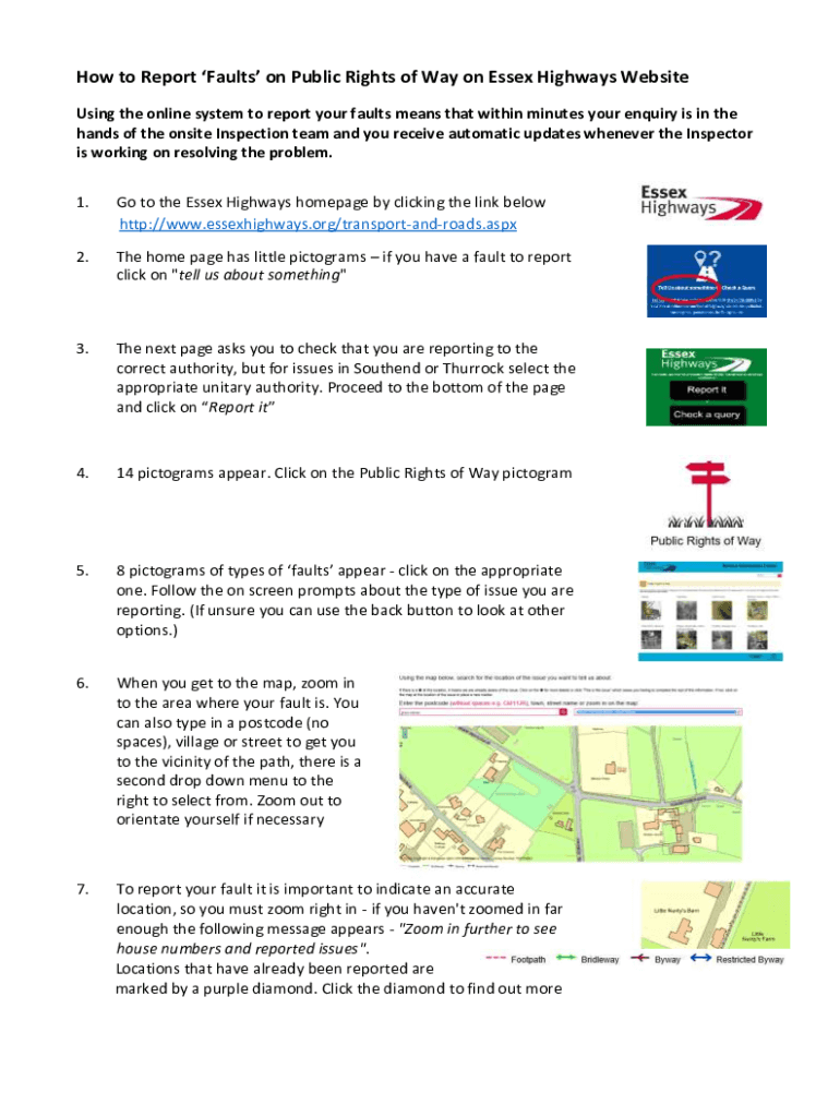 How to Report Faults on Public Rights of Way on Essex Highways Website Using the online system to report your faults means that within minutes your inquiry is in the hands of the onsite Inspection