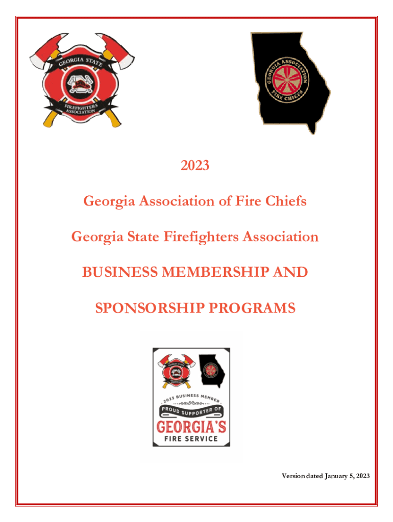 2023 Georgia Association of Fire Chiefs Georgia State Firefighters Association BUSINESS MEMBERSHIP AND SPONSORSHIP PROGRAMSVersion dated January 5, 2023Our vision is to create beneficial connections