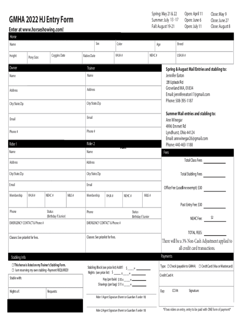 Open: July 11Enter at www.horseshowing.com! Close: May 9