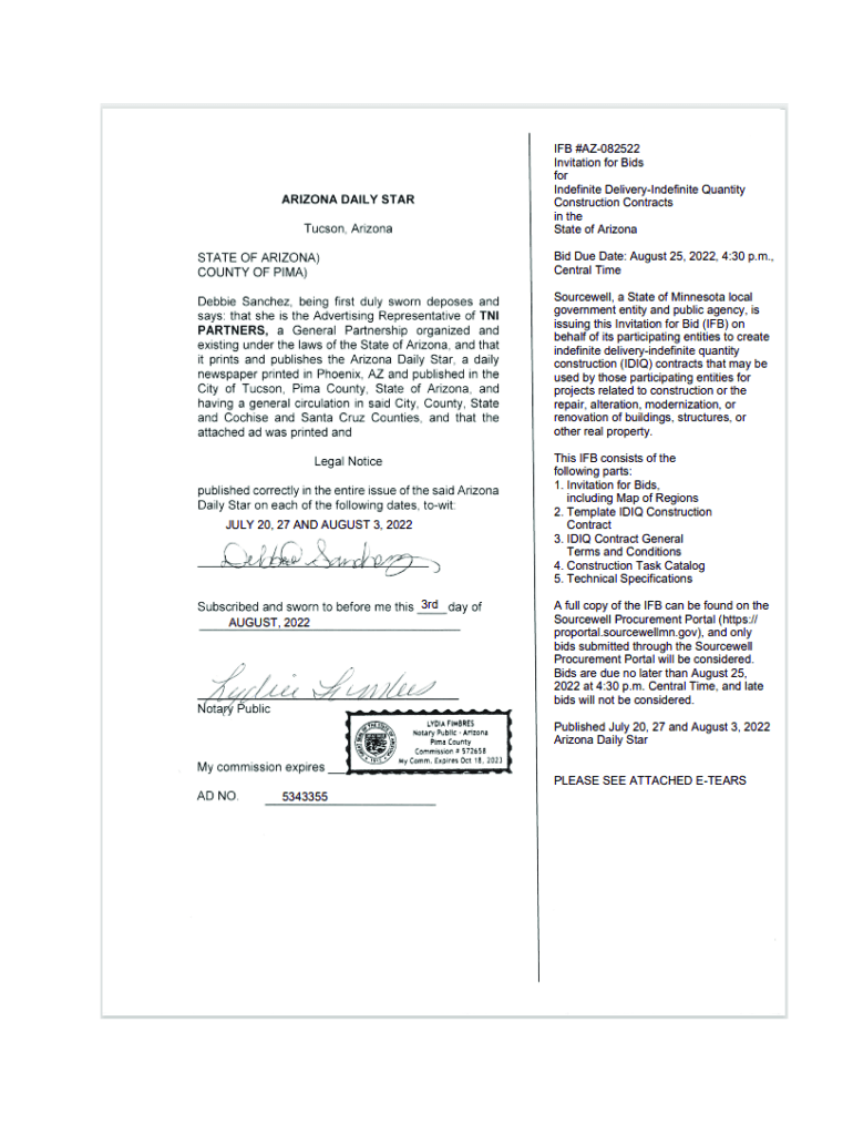Get the free Proof of Publication - Sourcewell