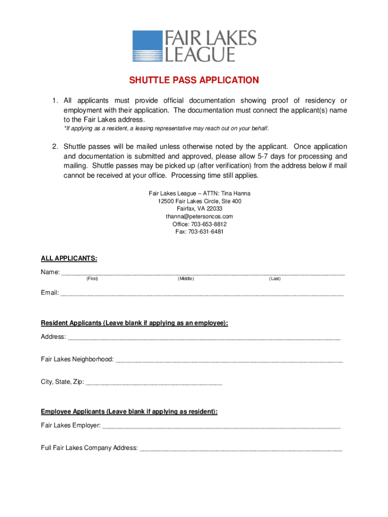 SHUTTLE PASS APPLICATION 1. All applicants must provide official documentation showing proof of residency or employment with their application. The documentation must connect the applicant(s) name