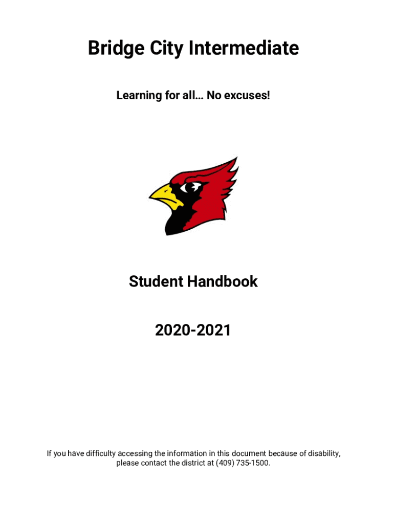 Bridge City Intermediate Learning for all No excuses! Student Handbook 20202021 If you have difficulty accessing the information in this document because of disability, please contact the district