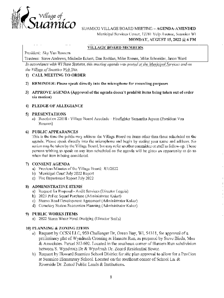 SUMMIT VILLAGE BOARD MEETING AGENDA AMENDEDMunicipal Services Center, 12781 Help Avenue, Summit WI