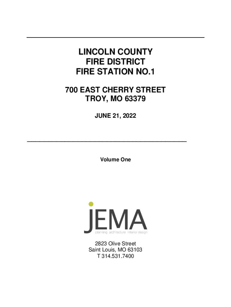 LINCOLN COUNTY FIRE DISTRICT FIRE STATION NO.1 700 EAST CHERRY STREET TROY, MO 63379 JUNE 21, 2022___ Volume One2823 Olive Street Saint Louis, MO 63103 T 314.531.7400TABLE OF CONTENTS DivisionSection