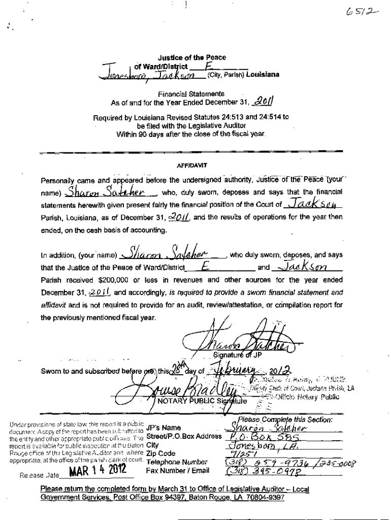 &^/PJ u s t i c e o f the Peace I o f Ward/District phi LA/YVO n7Aj(f.l(CNN(City, Parish) Louisiana risk iflaSTFinancial Statements. As of and for the Year Ended December 31, CFL Required by Louisiana