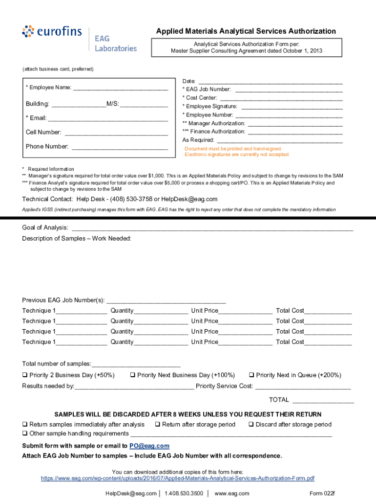 How to fill out applied-materials-analytical-services-authorization-form002f0219rev