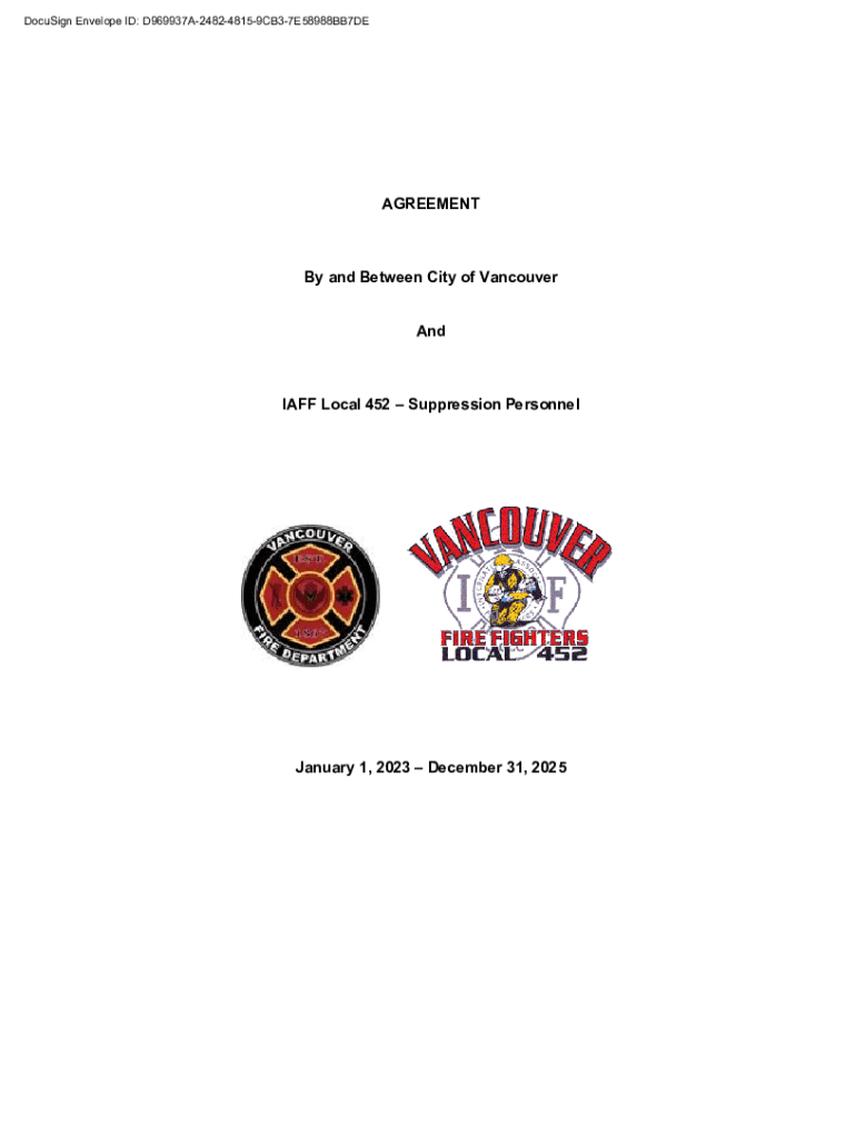 DocuSign Envelope ID: D969937A248248159CB37E58988BB7DEAGREEMENTBy and Between City of Vancouver India Local 452 Suppression Personnel January 1, 2023, December 31, 2025DocuSign Envelope ID: D969937A248248159CB37E58988BB7DETABLE