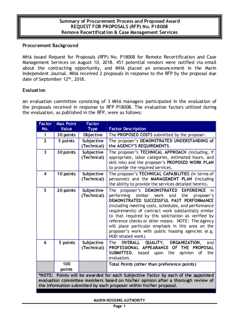 Summary of Procurement Process and Proposed Award REQUEST FOR PROPOSALS (RFP) No. P18008 Remove Recertification & Case Management Services Procurement Background MA issued Request for Proposals (RFP)