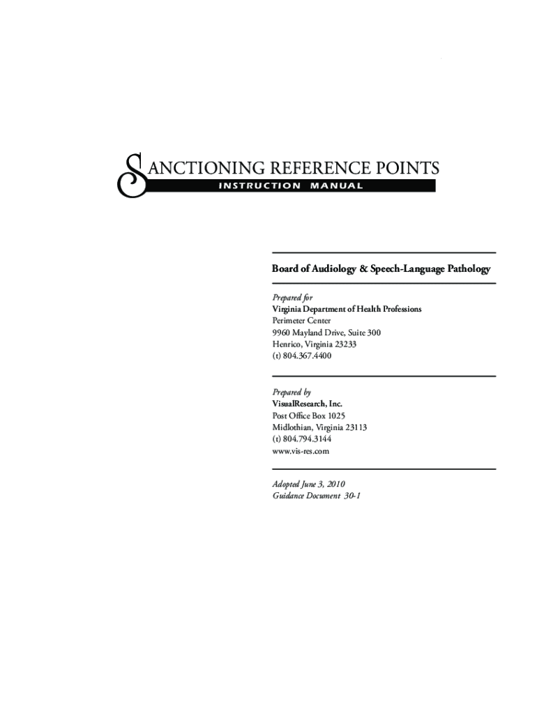 1SanCtIOnIng Reference Points instruction a nun board of Physical Therapy Board of Audiology & SpeechLanguage Pathology Prepared for Virginia Department of Health Professions Prepared for Perimeter
