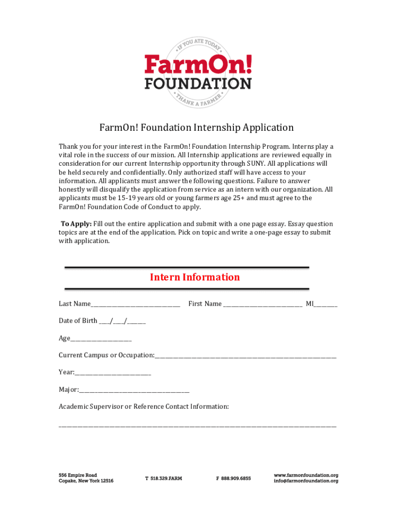 Get the free FarmOn! Foundation Internship Application Intern Information
