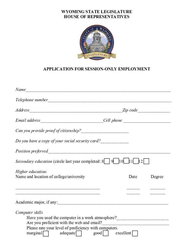 HOUSE OF REPRESENTATIVESAPPLICATION FOR SESSIONAL EMPLOYMENTName___