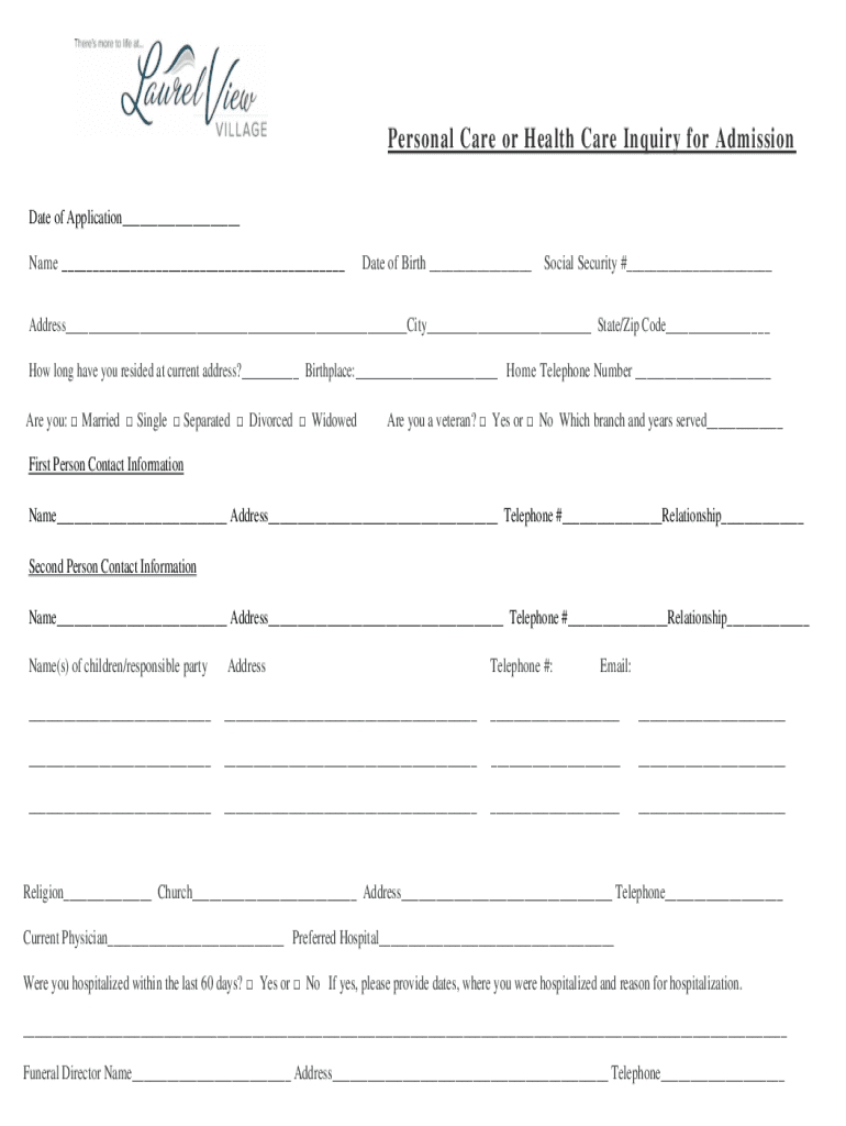 Get the free Application for Admission - Manchester Rehab and Healthcare
