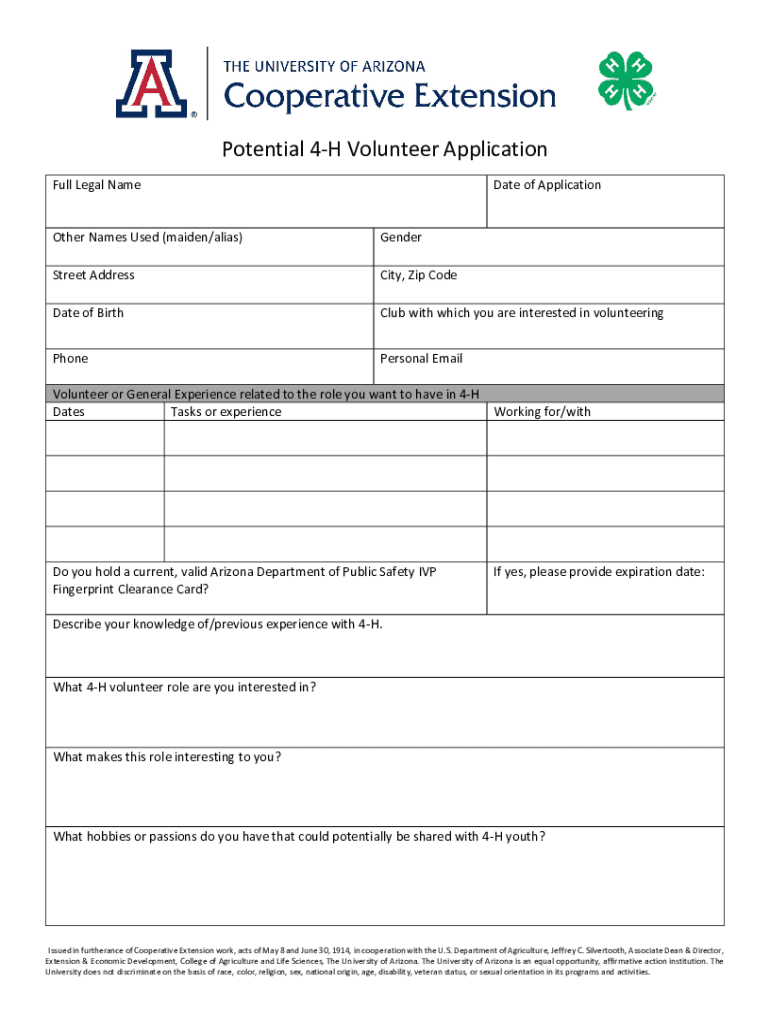 Get the free 4-H Youth Development VOLUNTEER APPLICATION ... - extension arizona