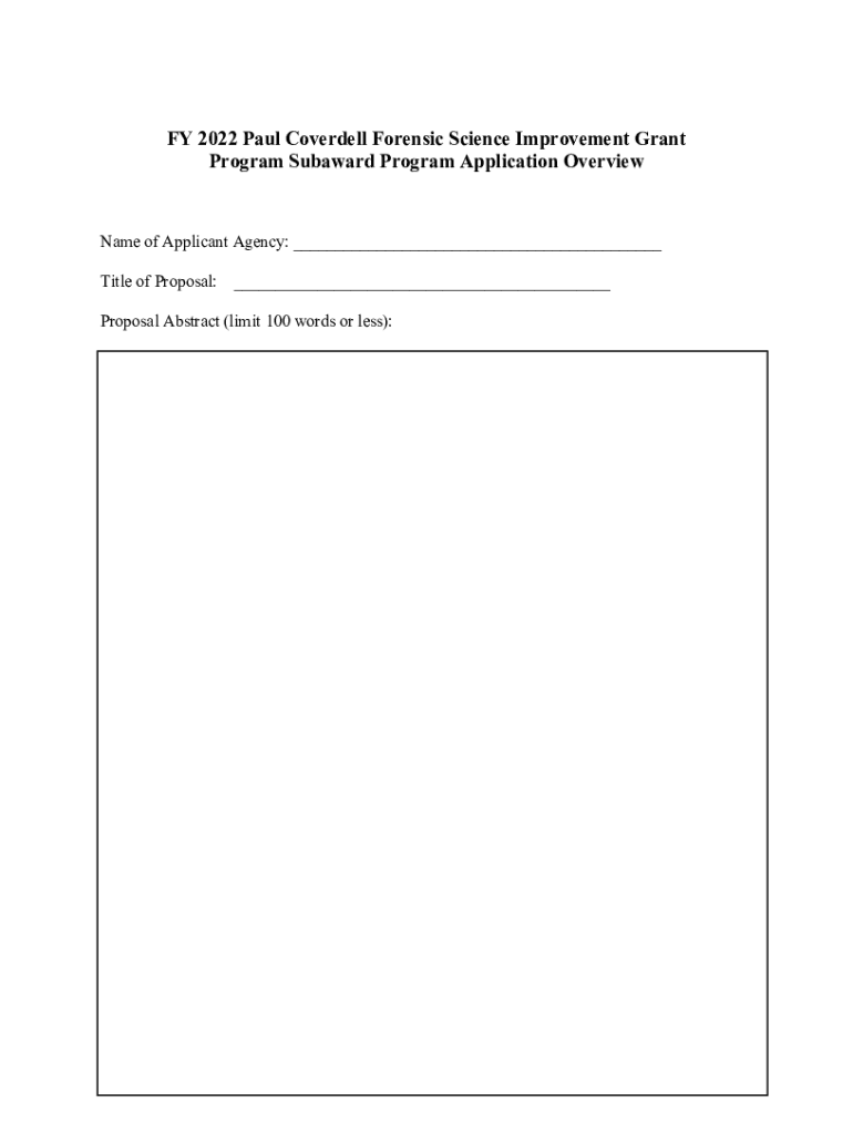 FY 2022 Paul Cover dell Forensic Science Improvement Subaward Applications and Required Forms CODA 16.742All Assurances and Certifications (listed on the Subaward Application Checklist) that require