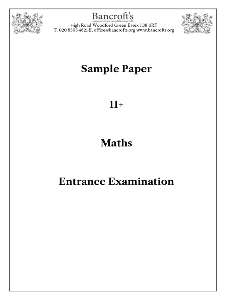 T. 020 8505 4821 E. office@bancrofts.org www.bancrofts.orgSample Paper11+MathsEntrance ExaminationBancrofts