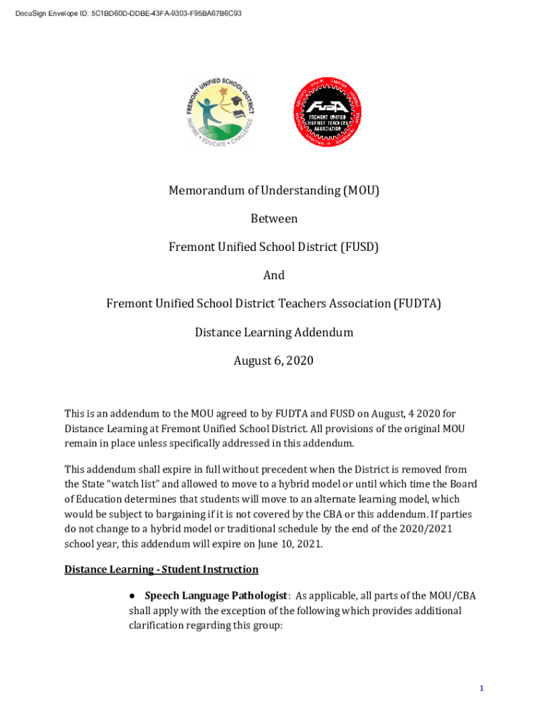 DocuSign Envelope ID: 5C1BD60DDDBE43FA9303F95BA67B6C93Memorandum of Understanding (YOU) Between Fremont Unified School District (FUND) And Fremont Unified School District Teachers Association (FUD