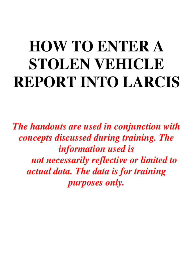 Get the free HOW TO ENTER A STOLEN VEHICLE REPORT INTO LARCIS