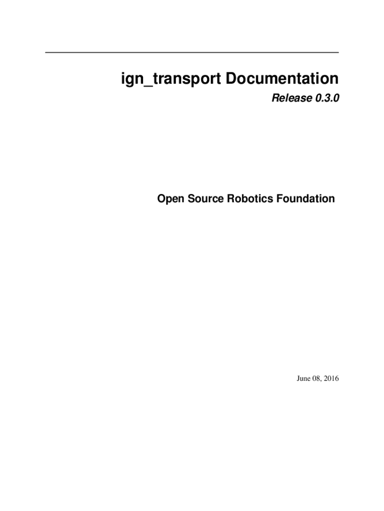 Ign_transport Documentation Release 0.3.0Open Source Robotics Foundation June 08, 2016Contents1What is Ignition Transport?2Installation 2.1 Ubuntu Linux. . . . . . . . . . . . 2.2 Mac OS X.. . . .