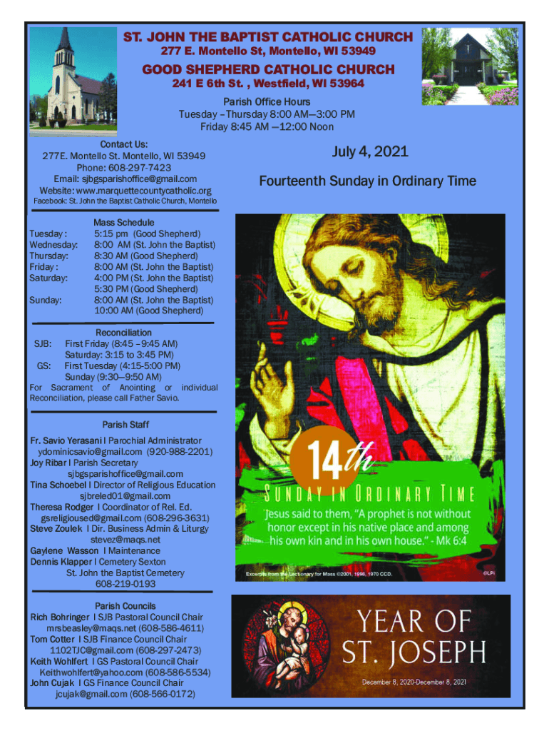 ST. JOHN THE BAPTIST CATHOLIC December 6, 2020, CHURCH 277 E. Costello St, Costello, WI 53949Second Sunday Of Advent GOOD SHEPHERD CATHOLIC CHURCH COSTELLO ST. JOHN THE BAPTIST CATHOLIC CHURCH 241