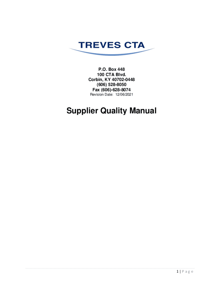 P.O. Box 448 100 CTA Blvd. Corbin, KY 407020448 (606) 5288050 Fax (606)6288074 Revision Date: 12/06/2021Supplier Quality Manual1|Vegetable of Contents Introduction ..................................................................................................................................................
