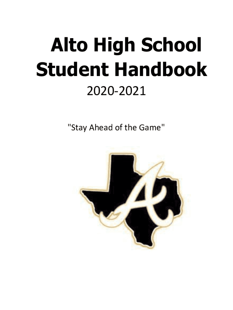 Alto High School Student Handbook 20202021 \” Stay Ahead of the Game\” Alto High School Student HandbookAcknowledgment of Electronic Distribution of Student Handbook My child and I have been offered