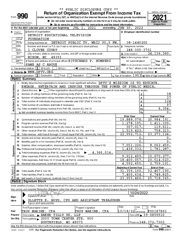 ** PUBLIC DISCLOSURE COPY ** Form990Return of Organization Exempt From Income Tax OMB No. 15450047| Do not enter social security numbers on this form as it may be made public. Open to Public InspectionDepartment