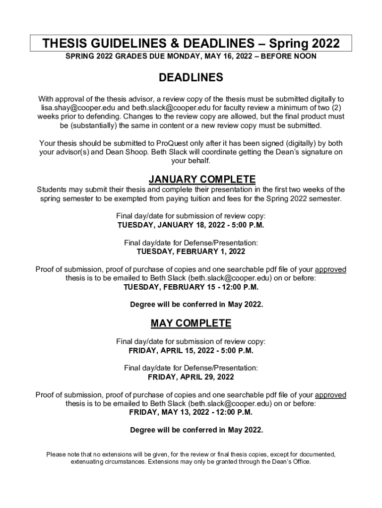 Get the free Thesis Deadlines and Guidelines - Spring 2022 DRAFT