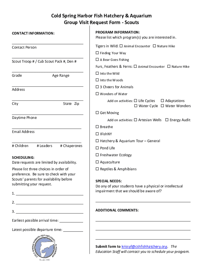 Get the free Group Visit Request Form - Scouts