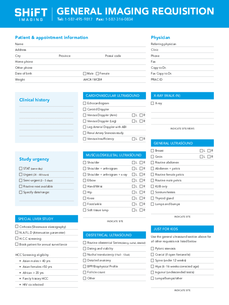 Obtain the necessary forms from the healthcare provider or imaging center.