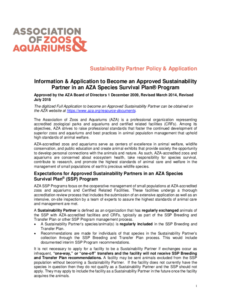 Sustainability Partner Policy & Application Information & Application to Become an Approved Sustainability Partner in an AZA Species Survival Plan Program Approved by the AZA Board of Directors 1