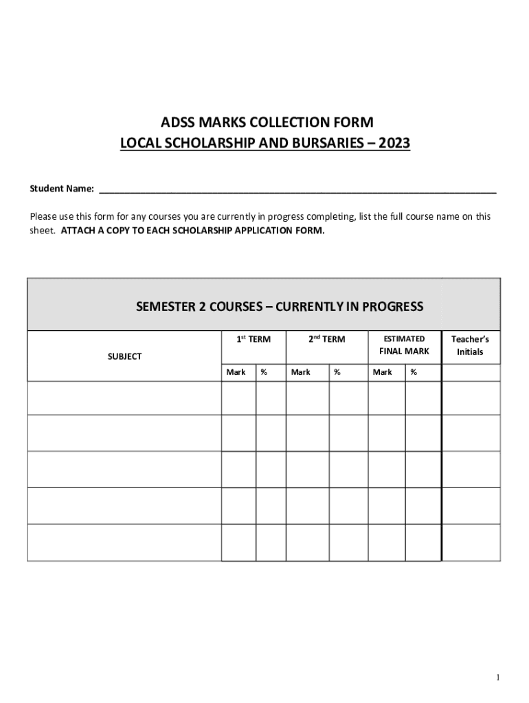 Get the free ADSS MARKS COLLECTION FORM LOCAL ...