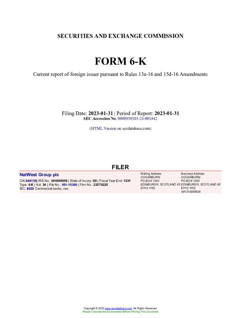 The NatWest Group PLC form is a regulatory document that corporations must file to comply with legal and financial disclosure requirements.