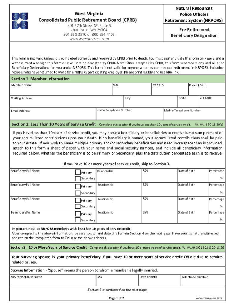 Get the free natural resources police officers retirement system (nrpors)